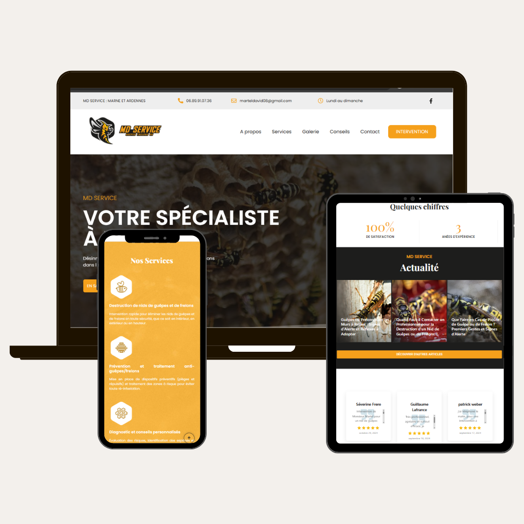 Réalisation du site internet + rédaction web du site MD Services : intervention sur les nids de guêpes et frelons sur Rethel et les alentours Site web : https://md-frelons-guepes-rethel.fr/