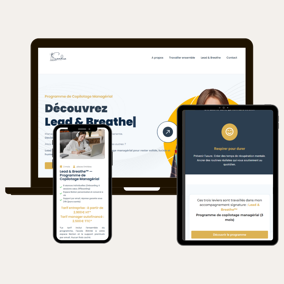 Réalisation du site internet pour Programme de Copilotage Managérial : https://sandragafari.fr/